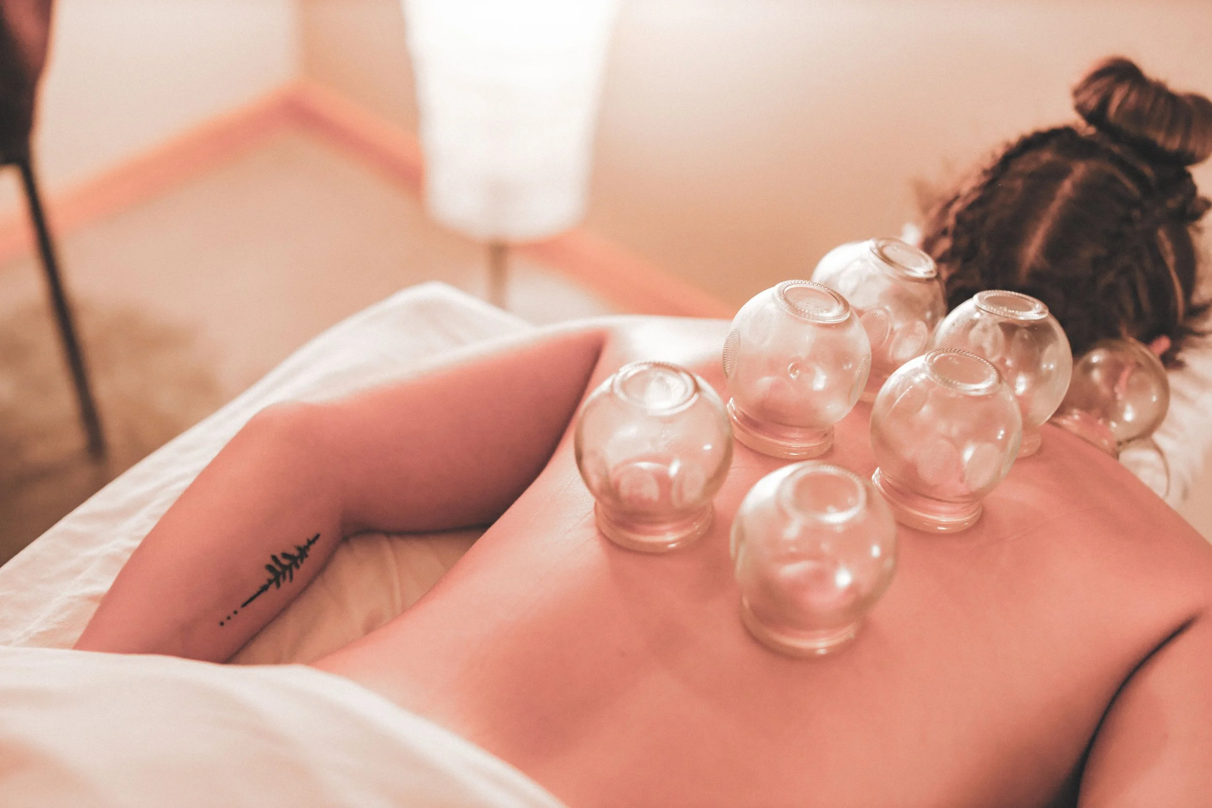 Cupping creates a negative pressure. Unlike massage, which compresses tissues, cupping decompresses them. All forms of cupping lift the skin and superficial fascia, expands the space between tissue layers and increases lymphatic flow. Depending on your case, different cups will be used.